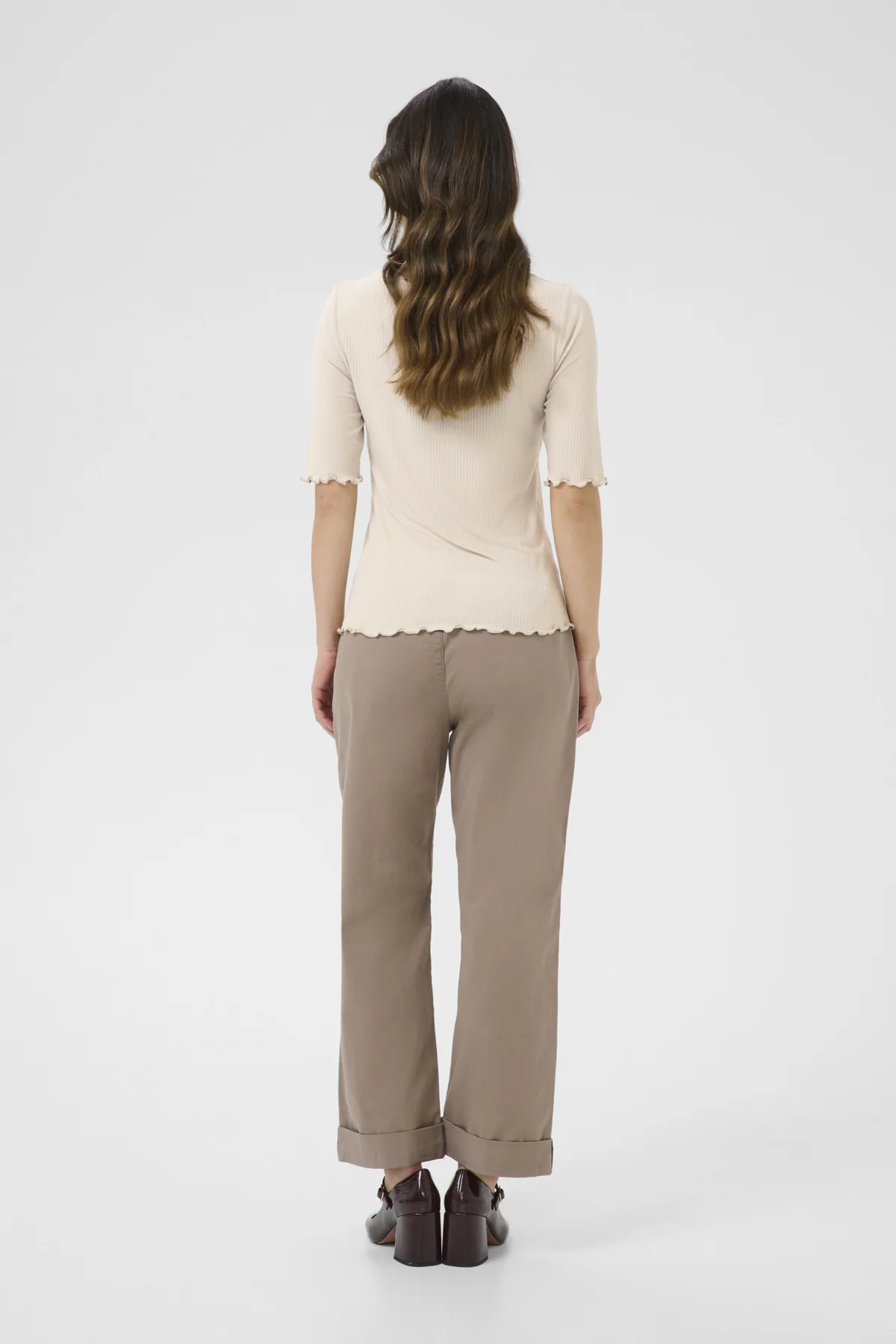 Avec ce chandail aux bords ondoyants, chaque détail murmure la douceur, le mouvement et une forme de grâce décontractée. Les finitions en vagues, soulignant l’encolure et l’ourlet, tracent sur la peau de délicates arabesques, telles des vaguelettes venant effleurer le rivage. Ce motif singulier attire le regard, enrichit la texture et insuffle une âme nouvelle à une coupe volontairement épurée.