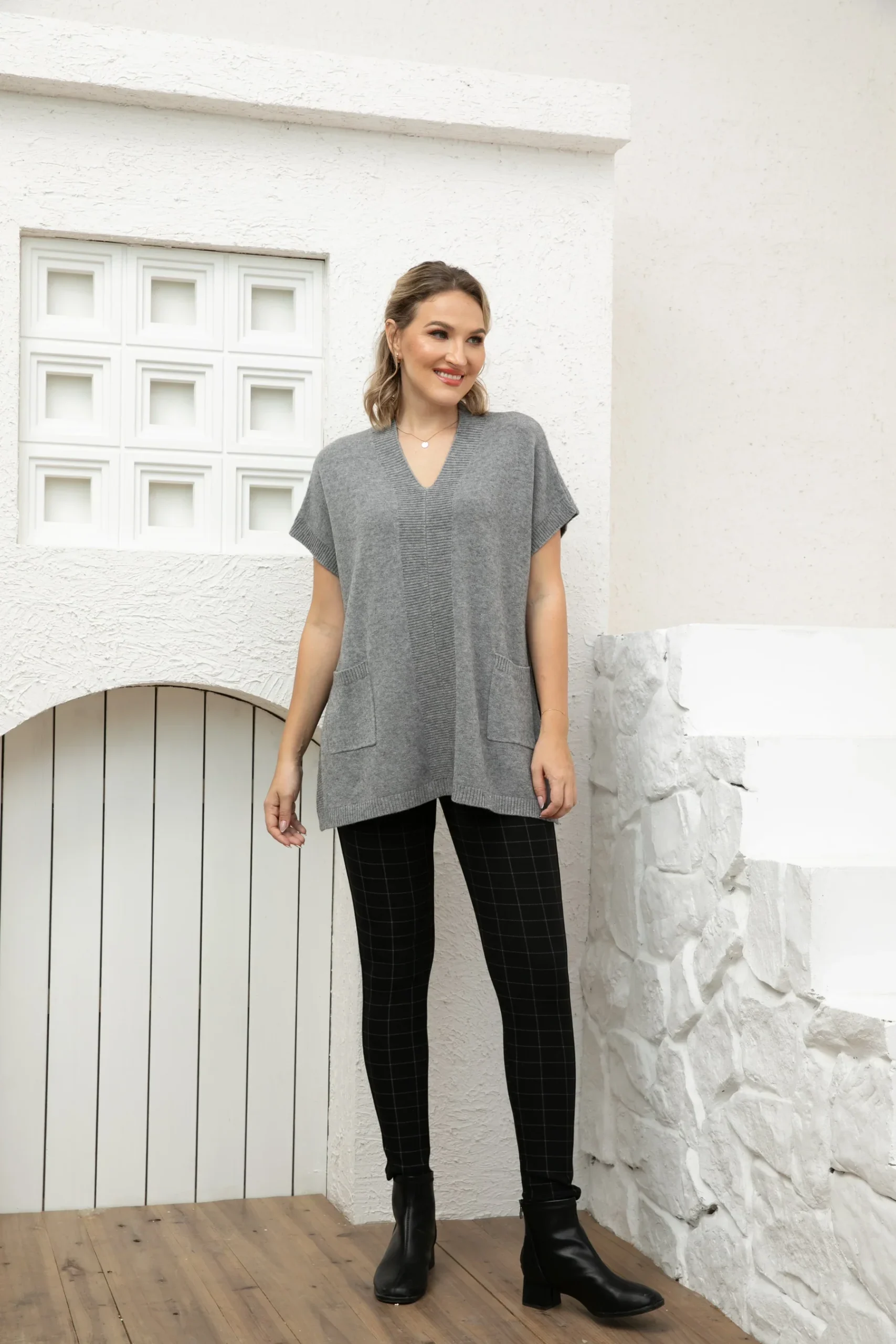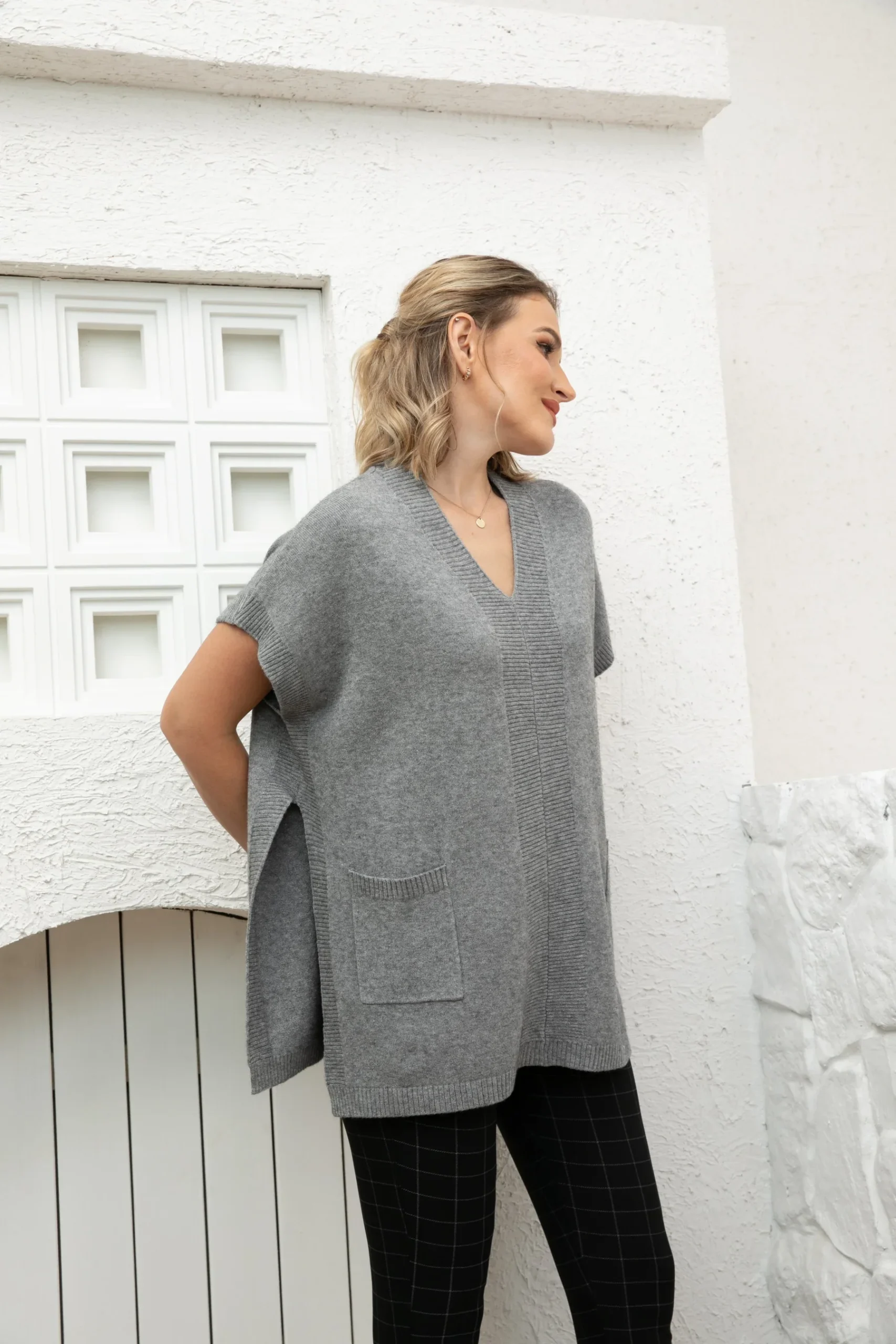 Modèle Vneck short sleeve sweater topper