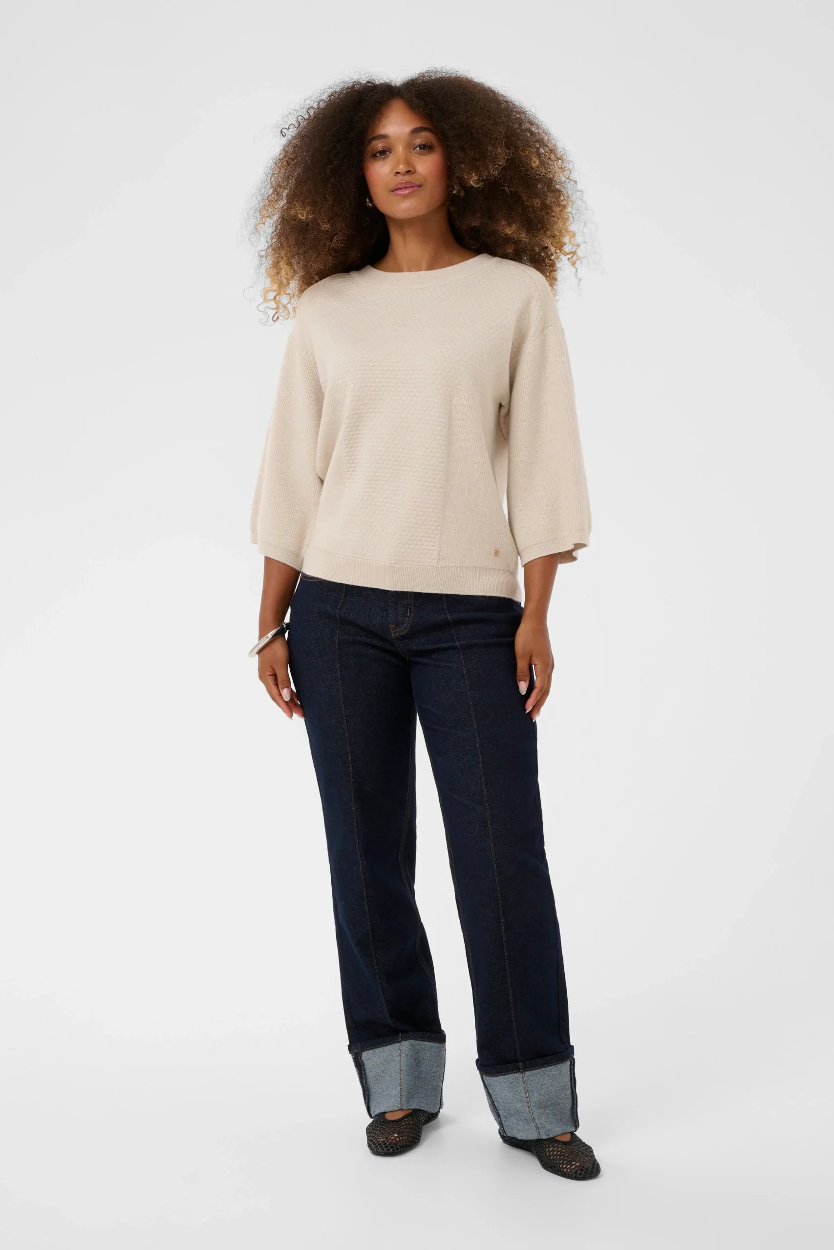 Ses manches trois-quarts larges et sa texture unique en font une pièce polyvalente