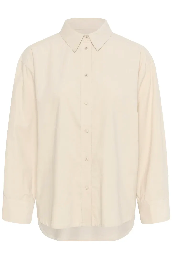 Cette chemise blanc cassé se distingue par un détail subtil et raffiné : ses poignets finement plissés, évoquant de délicates ondulations qui rythment avec grâce chacun des mouvements du bras. Ce travail minutieux confère à ce classique une sophistication insoupçonnée, insufflant à la pièce vie et personnalité. La teinte douce, légèrement chaude, enveloppe la silhouette d’une lumière apaisante, tandis que la longueur juste au-dessus des hanches apporte une touche de modernité fluide. Chaque geste dévoile ces poignets travaillés, véritables petites œuvres d’art à portée de main.
