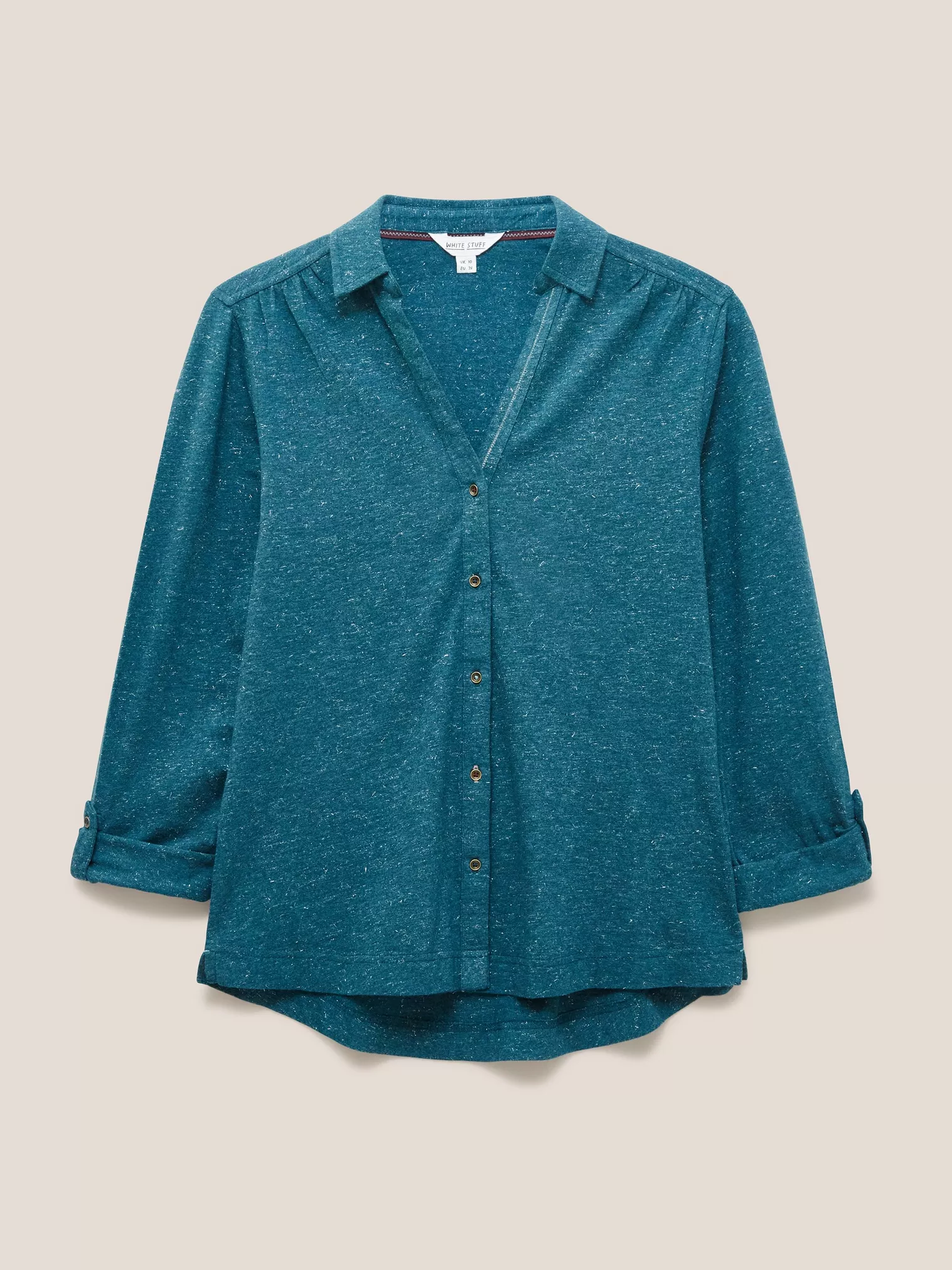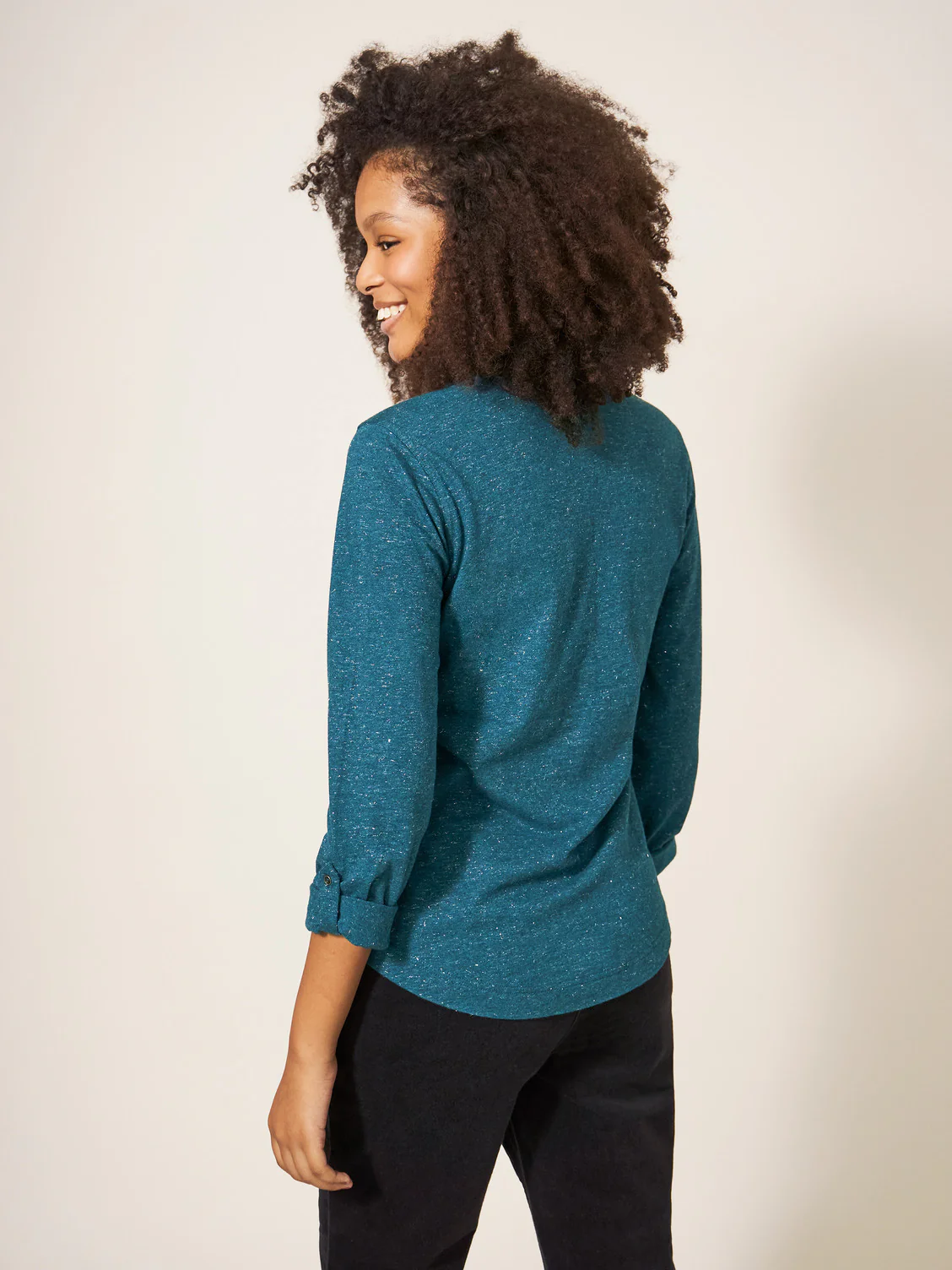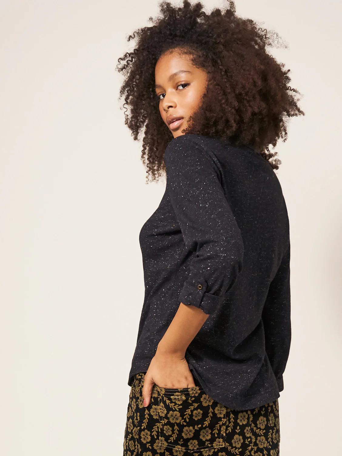 Découvrez l’élégance polyvalente de cette chemise légèrement brillante aux manches longues ajustables, qui peuvent se transformer en manches 3/4 en un clin d’œil. Son tissu subtilement scintillant ajoute une touche d’éclat à votre tenue, parfait pour des occasions décontractées ou professionnelles. Portez-la avec un pantalon habillé pour une journée au bureau, ou roulez les manches pour un look décontracté en ville. Cette chemise vous accompagnera avec style, que ce soit pour des réunions importantes ou des sorties entre amis, vous offrant une polyvalence sans compromis.