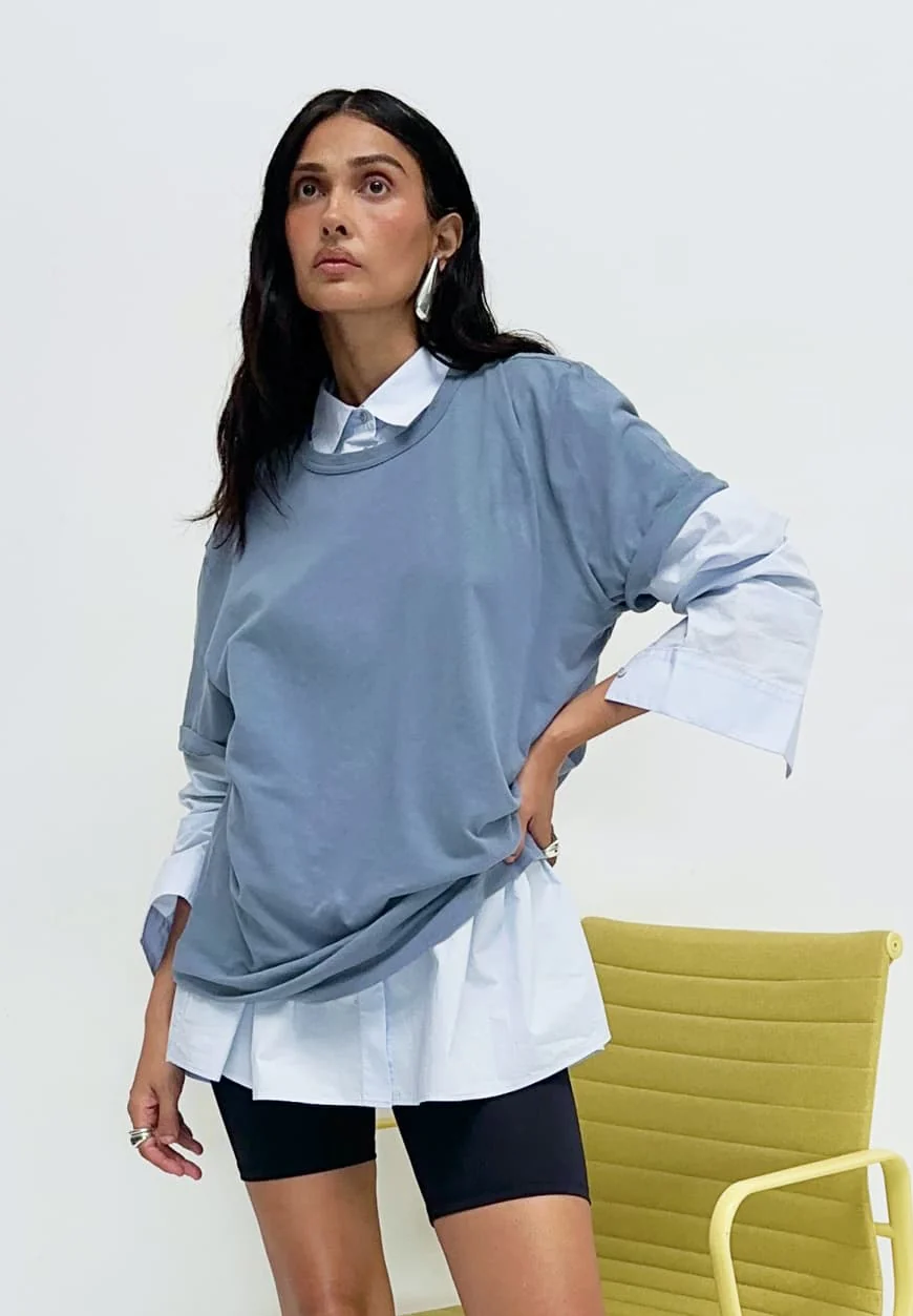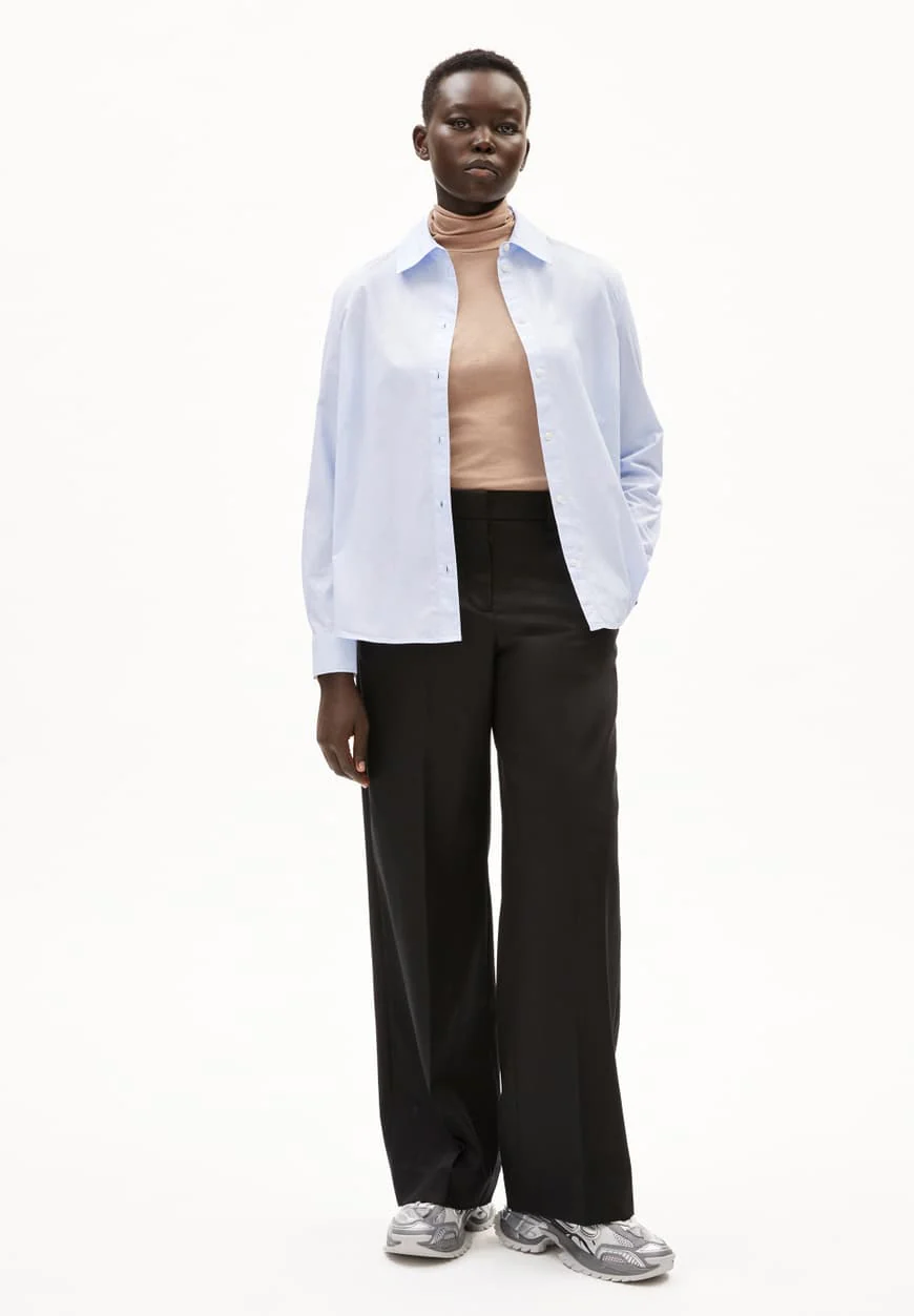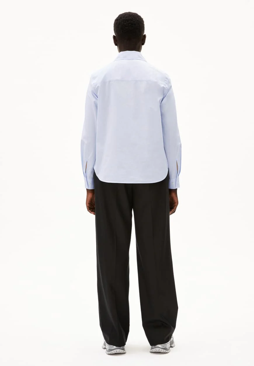 Cette chemise est simplement apaisante. Le bleu doux, une teinte subtile et délicate, apporte une touche de sérénité à votre tenue. Ce coloris polyvalent s’harmonise facilement avec une variété de pièces, que ce soit un pantalon noir pour une allure professionnelle ou un jean pour une sortie décontractée. Il s’agit d’un choix parfait pour apporter une note de fraîcheur et de luminosité à votre garde-robe, sans être trop éclatant.
