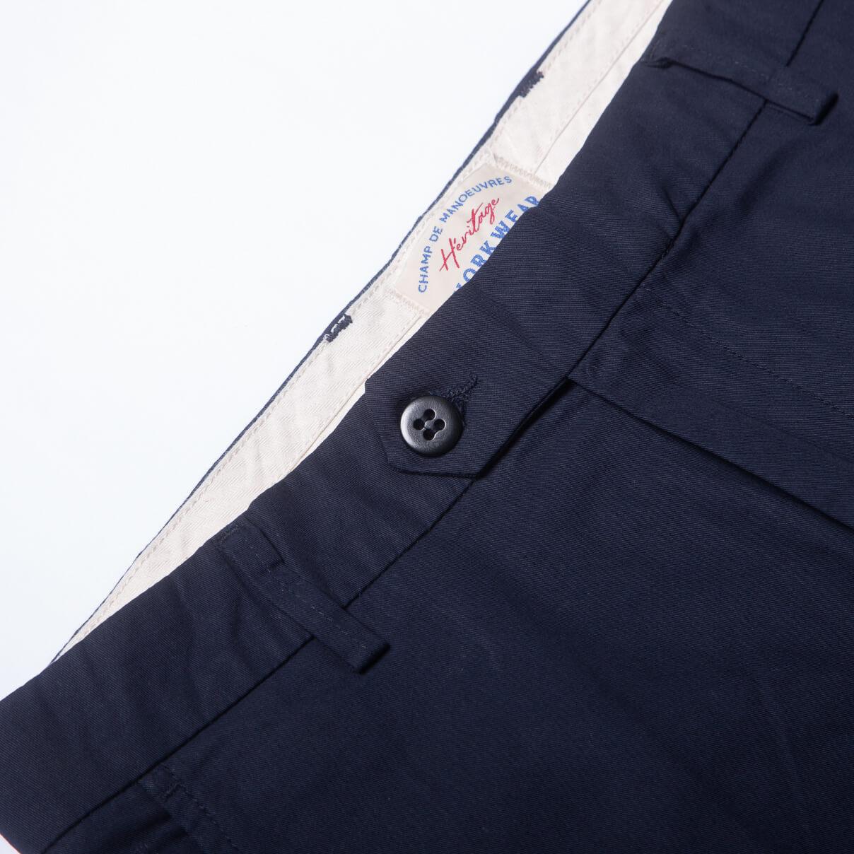 Notre chino gabardine de style Slack, réalisé avec un tissu gabardine de coton de qualité supérieure d’un poids de 250 g /m², tissé et teinté en France.