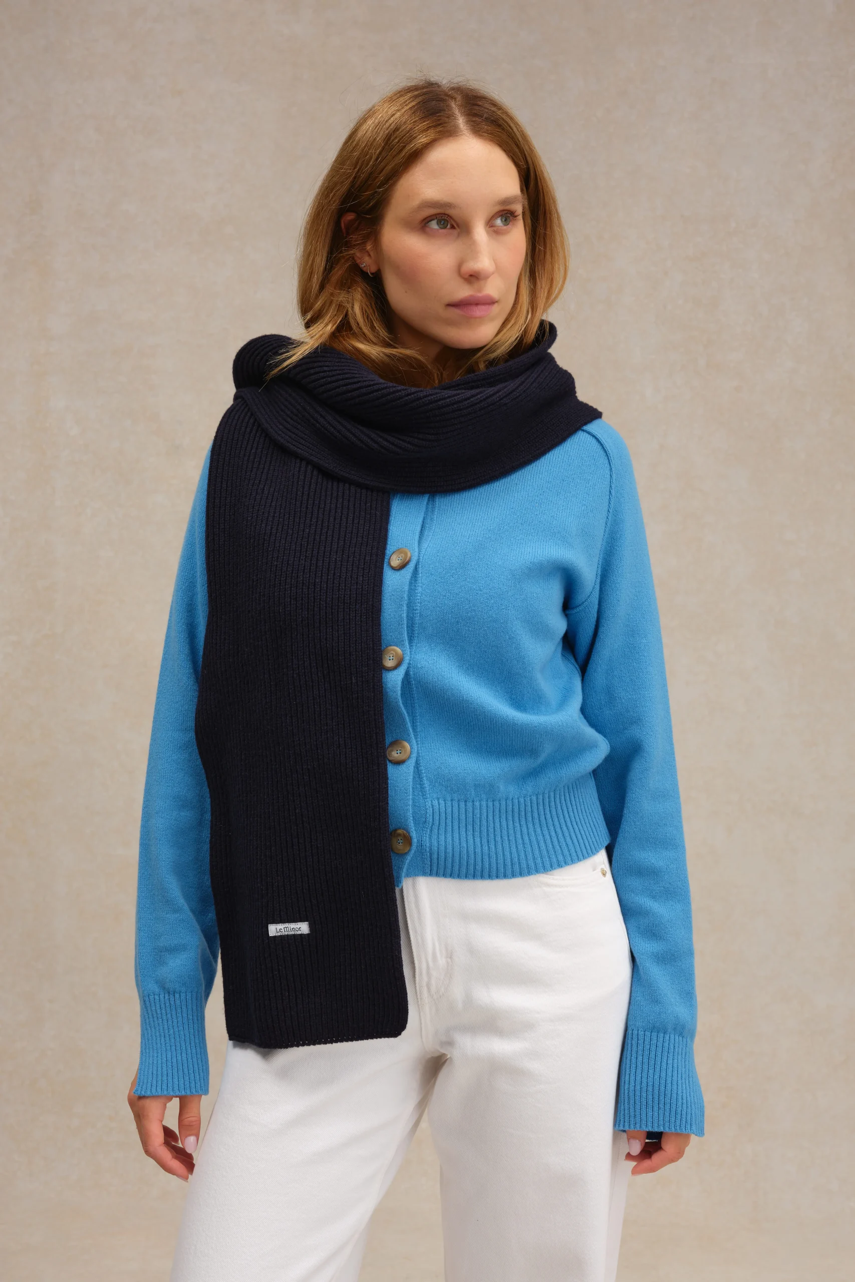 Enveloppez-vous dans le confort luxueux de notre écharpe en laine. Sa teinture bleu marine est intemporelle et sophistiquée. Sa laine mérinos procure une chaleur enveloppante et rend ce vêtement parfait pour les journées froides d’hiver. Ses dimensions généreuses vous permettent de la porter de différentes manières, ajoutant une touche de polyvalence à votre garde-robe. Chaque écharpe est fabriquée avec soin dans nos ateliers intégrés bretons. Toutes les étapes de fabrication sont réalisées à la main, garantissant une qualité exceptionnelle. Le savoir-faire de nos ateliers se reflète dans chaque détail, de la sélection de la laine à la finition de l’écharpe.