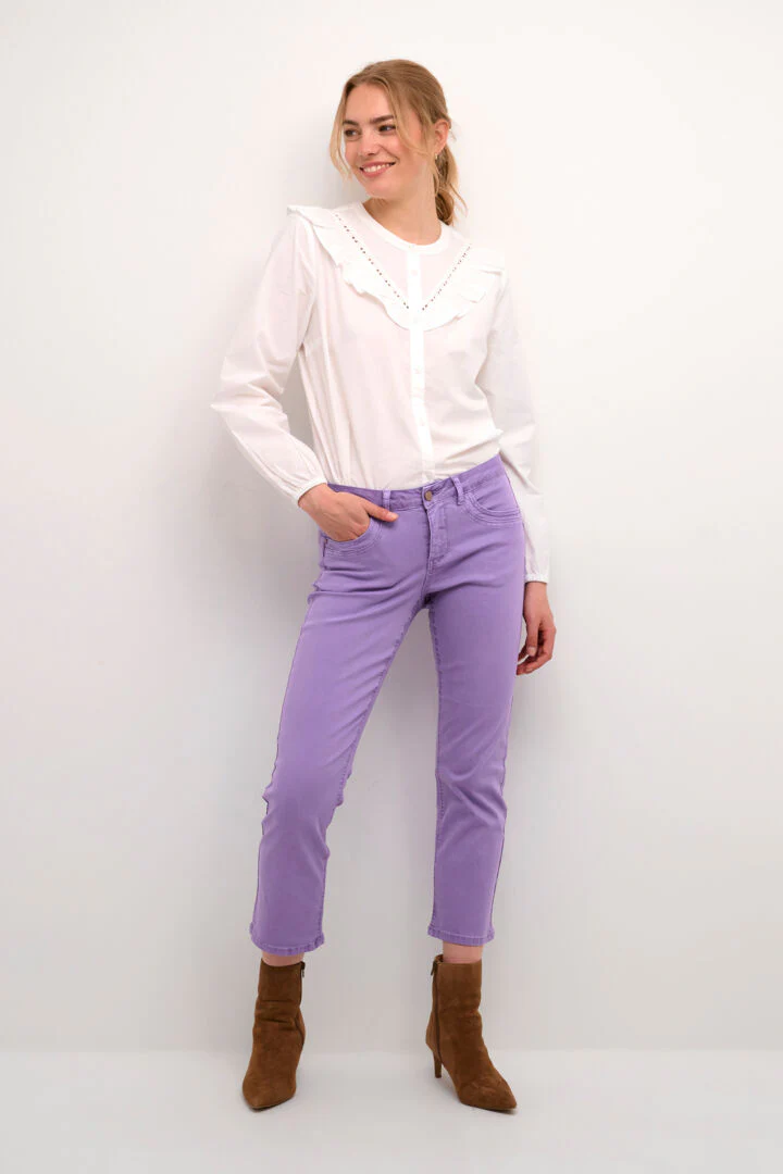 Sa coupe évasée ajoute une touche de fluidité et d’originalité à ce jean. Cette silhouette moderne élargit légèrement vers le bas, offrant une allure aérienne et contemporaine. La couleur vive de ce jean capri ajoute une dose de vitalité à votre garde-robe. C’est une option parfaite pour apporter de la fraîcheur et de l’éclat à votre look quotidien. Polyvalent et audacieux, ce jean peut être associé à différentes tenues.