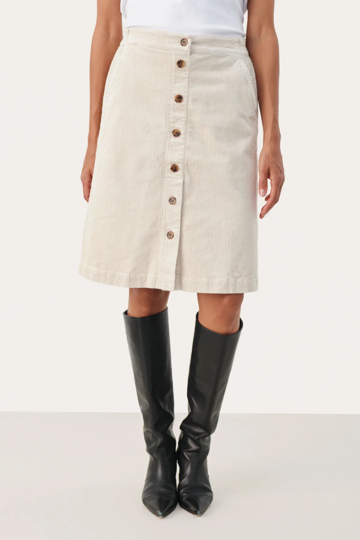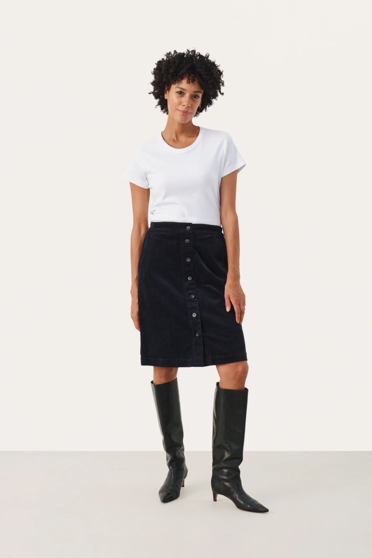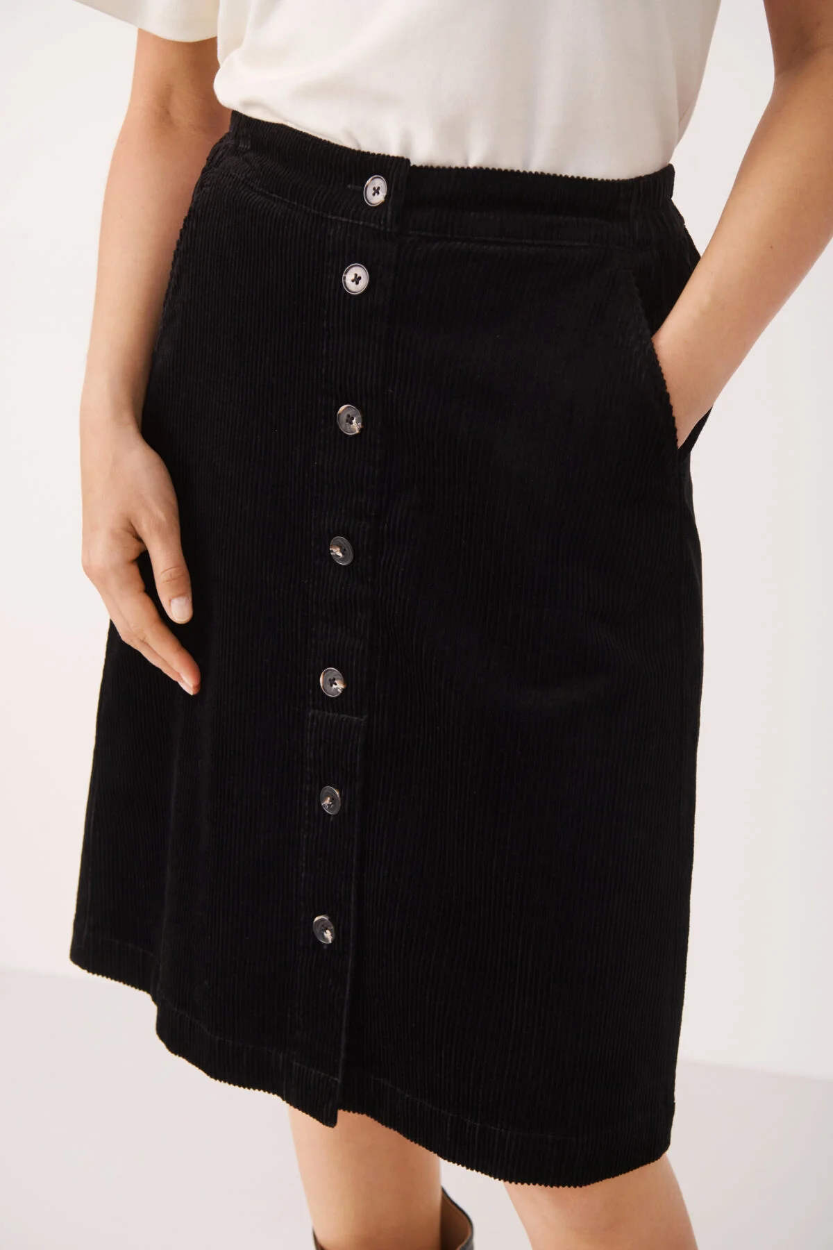 Cette élégante jupe en corduroy, agrémentée de boutons décoratifs à l’avant, est une pièce qui ajoute du charme et du style à votre garde-robe. Elle conserve sa forme élégante quelle que soit la situation. Sa polyvalence vous permet de l’associer facilement à différents hauts pour créer un look tendance en un instant. Essayez-la avec une blouse pour une touche plus chic
