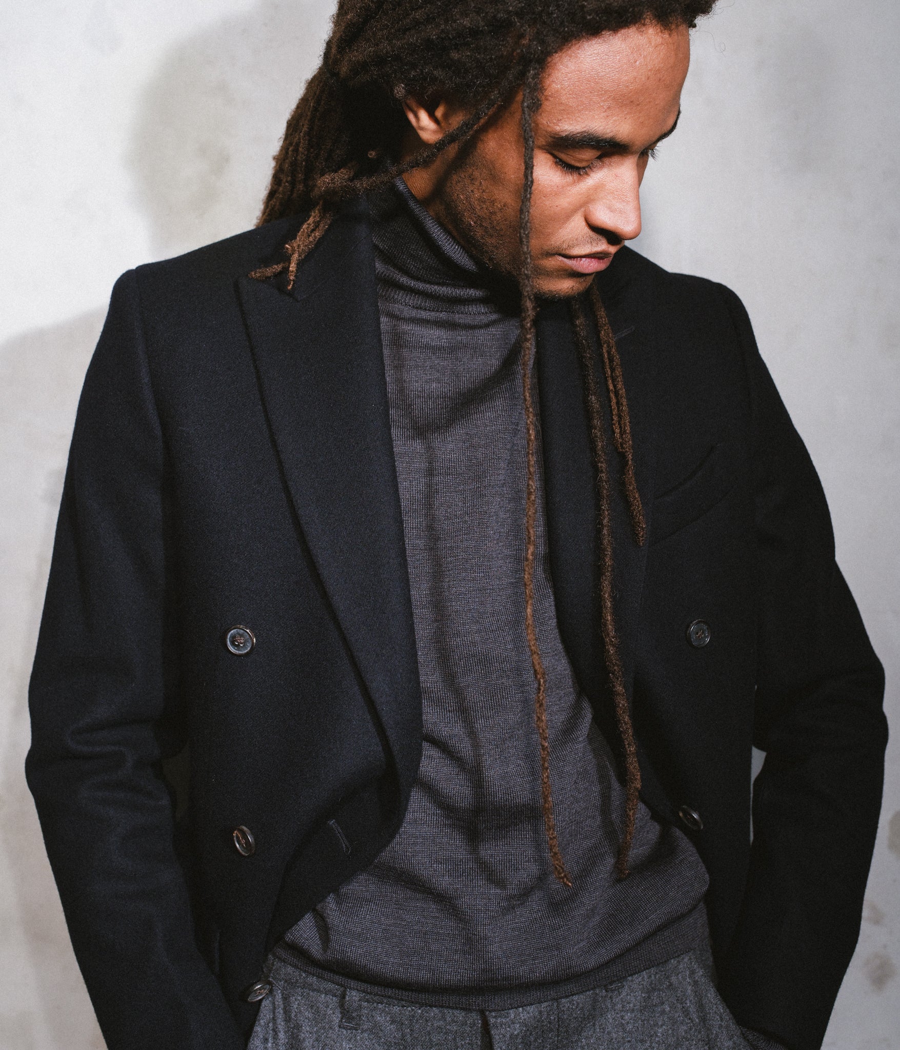 La coupe a été pensée pour être ajustée et confortable, respectant les proportions naturelles du corps, et permettant de porter le col roulé seul ou sous une veste avec élégance. Prenez votre taille habituelle.