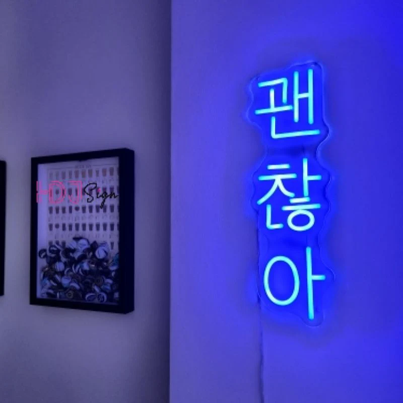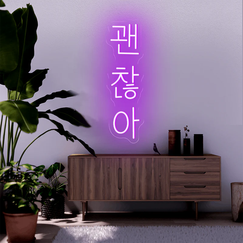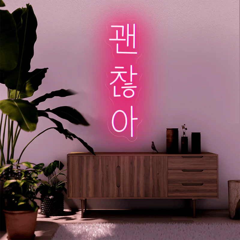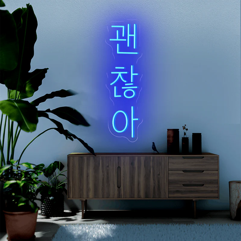 Ce néon Led « Tout Va Bien » en coréen créera une atmosphère unique et apaisante dans votre maison. Tous les fans de séries coréennes connaissent la célèbre phrase « Gwaenchana ! ». Vous aimerez sa lumière diffuse relaxante qui sublimera votre intérieur.