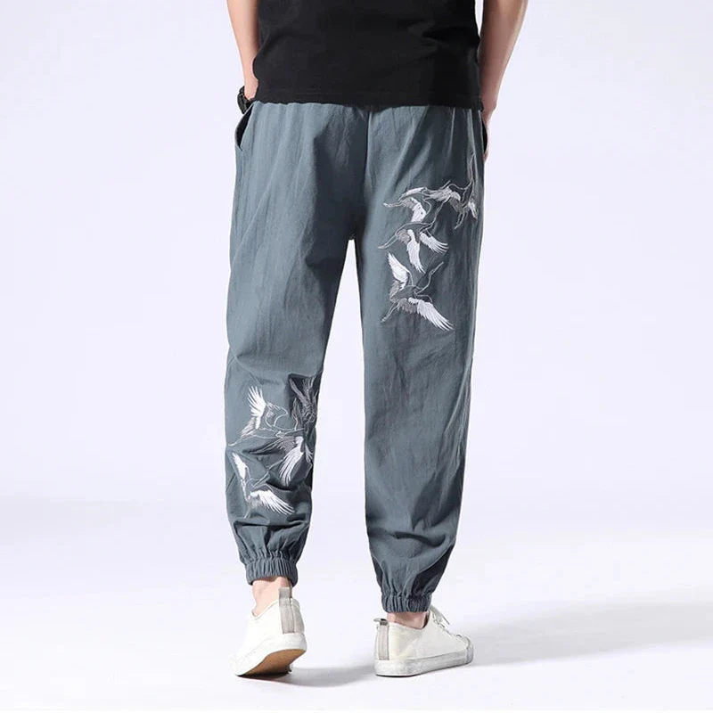 Pantalon grues brodés