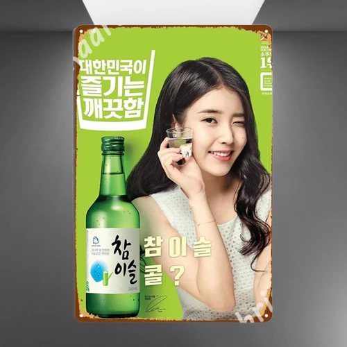 Idéal pour les amateurs d’objet publicitaire vintage ou les collectionneurs, voici une Plaque Soju en métal qui sera parfaite pour décorer votre intérieur ou pour augmenter votre collection. Plaque publicitaire avec une idole coréenne et la boisson soju emblématique de la Corée du Sud.
