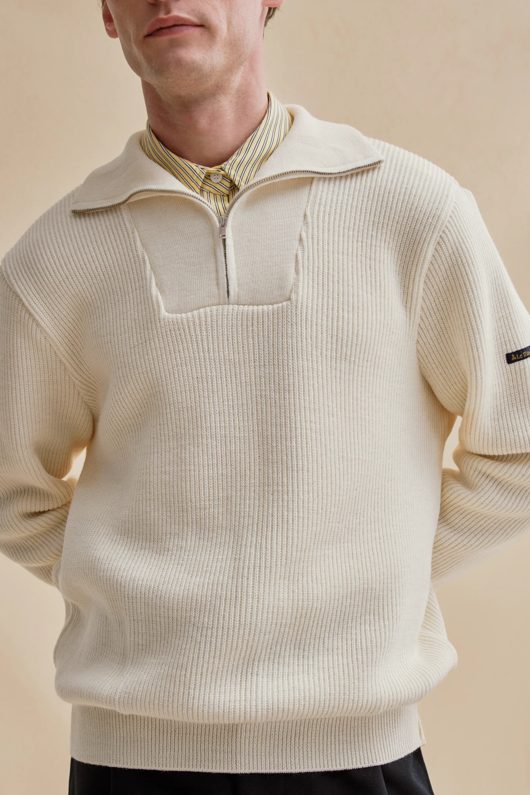 Soyez le premier à laisser votre avis sur “Pull camionneur écru en laine vierge pour homme”