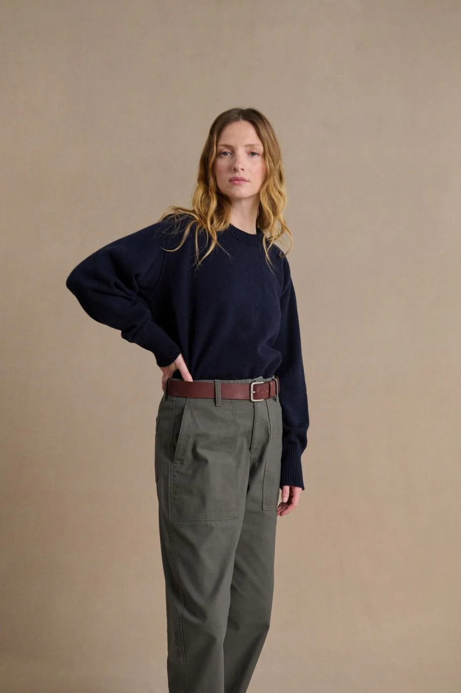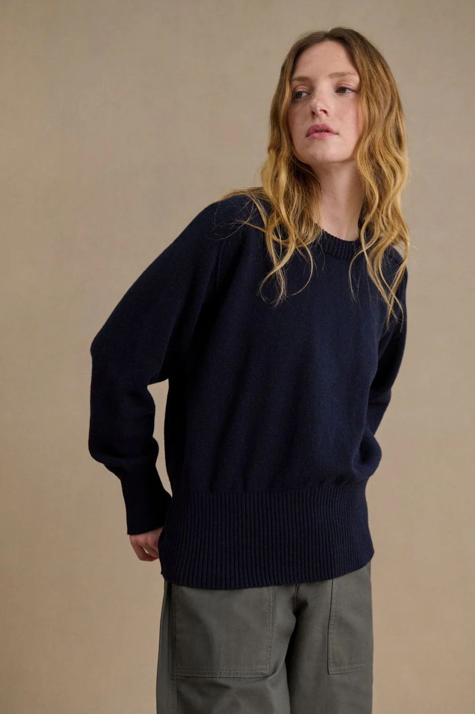 Tricoté dans une maille fine en laine mérinos d’une douceur exceptionnelle, ce pull enveloppe la peau avec légèreté tout en apportant chaleur et confort lors des journées fraîches d’automne, des soirées d’été ou en mi-saison. Le détail des manches « marteau », rehaussé d’une surpiqûre délicate, confère à ce modèle une élégance discrète et un caractère authentique.