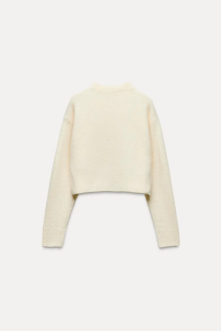 Ce pull court en maille douce est parfait pour un look confortable et tendance. Confectionné dans une maille douce et agréable au toucher, il apporte chaleur et légèreté, idéal pour les journées fraîches. Sa coupe courte met en valeur la silhouette tout en restant décontractée, parfait pour être porté avec un pantalon taille haute ou une jupe pour un style moderne. Polyvalent et facile à assortir, ce pull est la pièce idéale pour une tenue casual chic, alliant confort et élégance.