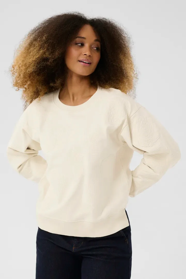 Il est ce pull qu’on ne remarque pas tout de suite, et qui pourtant devient indispensable. Un col rond délicatement dessiné, des manches longues qui s’étirent jusqu’aux poignets comme pour mieux capturer la chaleur… et ce gris tendre, entre brume du matin et cendre chic. Mais c’est surtout sa douceur qui trouble : un toucher velouté, presque mousseux, qui donne envie d’y plonger, d’y rester. À mi-chemin entre le pull doudou et le classique du vestiaire, il transforme l’ordinaire en refuge sensoriel.