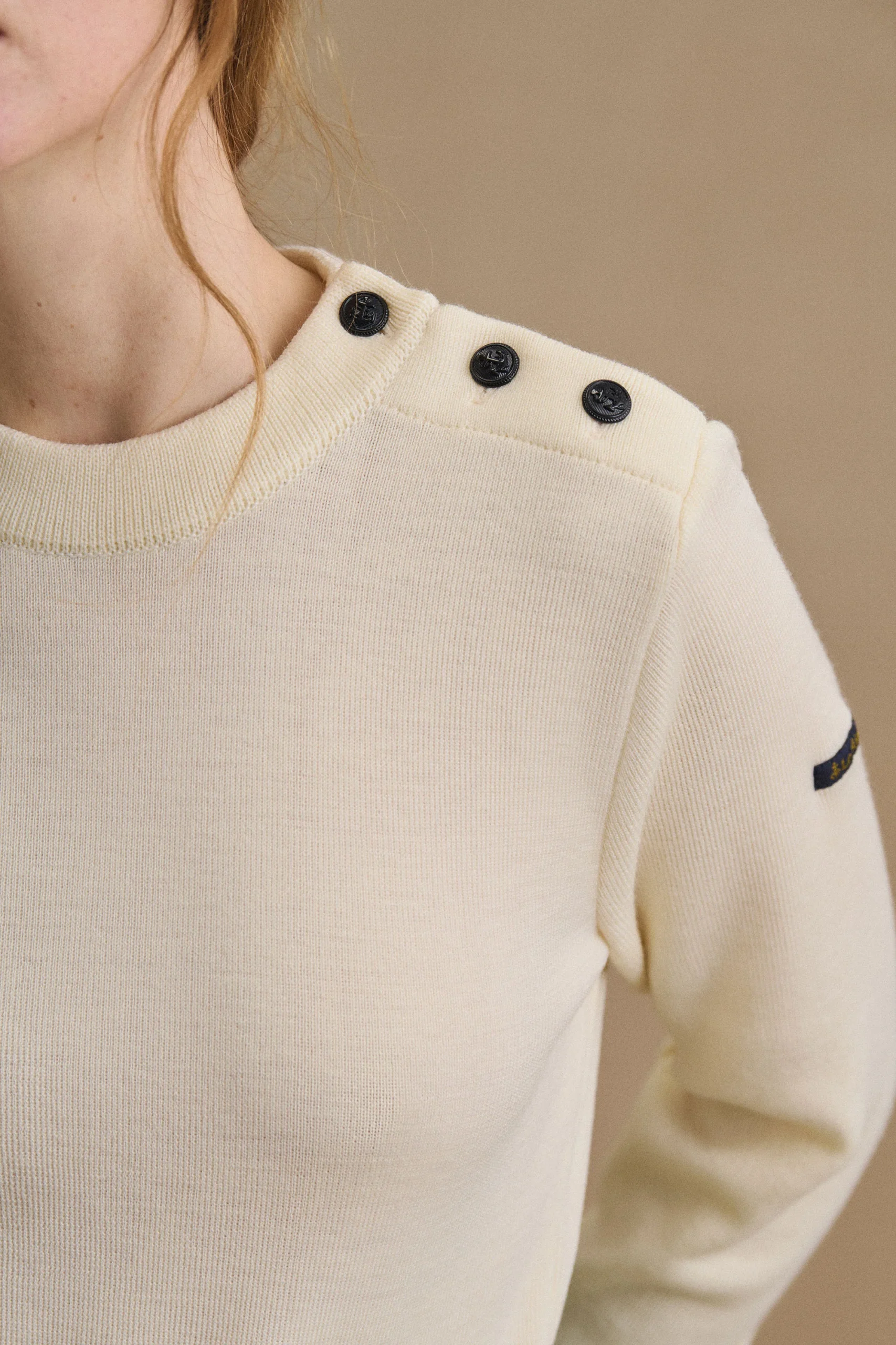 Ce pull marin pour femme écru en laine mérinos est doux, confortable et résistant. Imaginée sur le même modèle que notre vrai pull marin, cette version écrue possède des finitions soignées : une laine douce et de qualité, des boutons en métal et un col remaillé. Il sera donc une pièce forte de votre dressing, destinée à durer dans le temps.