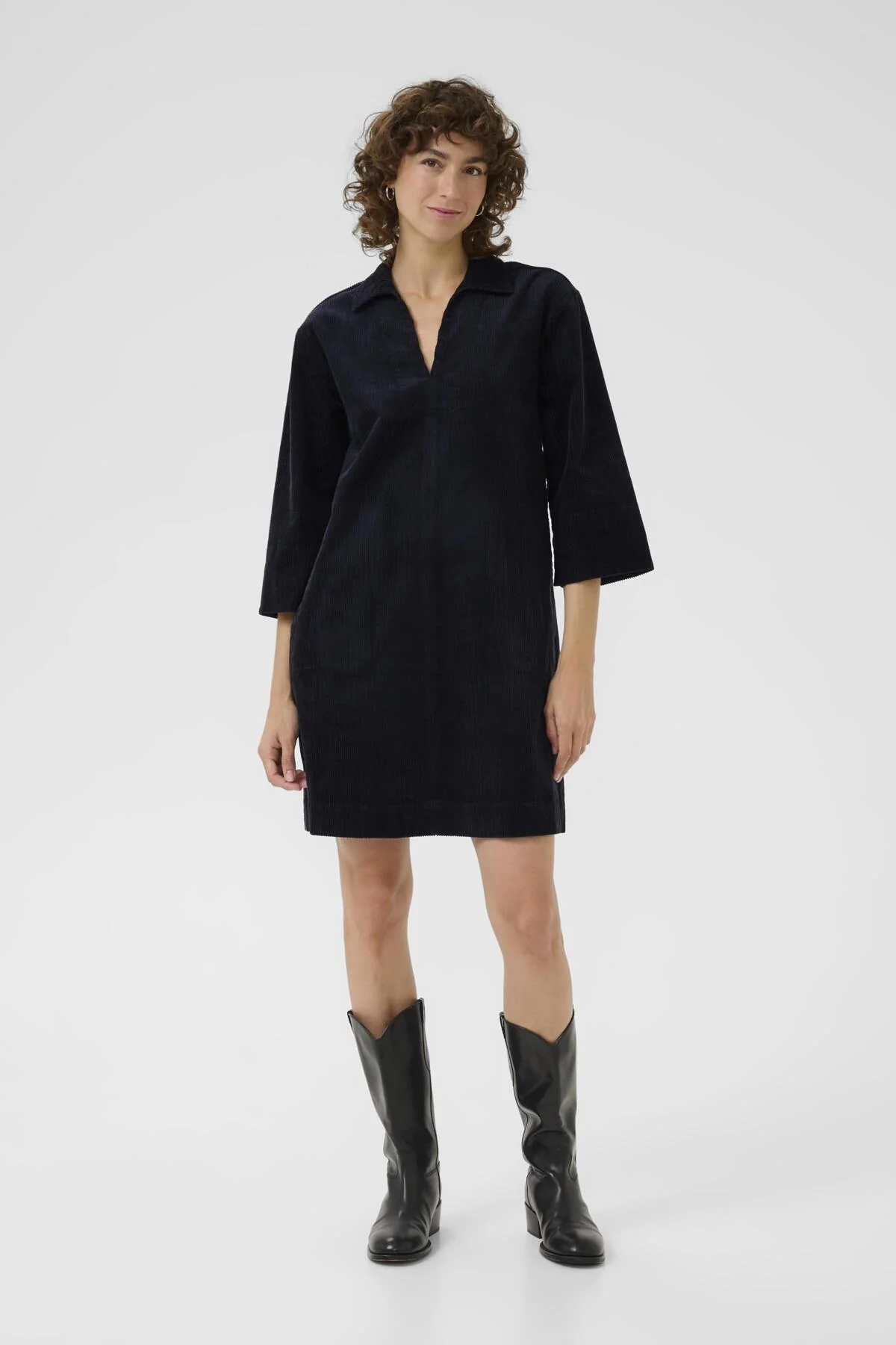 Cette robe en velours côtelé combine confort et style décontracté. Son tissu texturé apporte de la chaleur et une belle tenue, idéale pour les journées plus fraîches. Facile à porter seule ou en superposition, elle s’intègre naturellement au quotidien tout en offrant une allure soignée et actuelle.