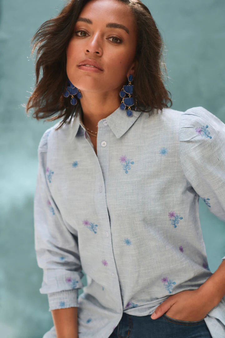 Les minis fleurs brodées ajoutent des détails raffinés et charmants à cette robe. Les finitions soignées et la qualité des broderies confèrent une allure haut de gamme à cette pièce unique. Ce vêtement passe-partout allie la tendance de la broderie à la légèreté d’une robe chemisier pour une allure féminine parfaite pour la saison estivale !