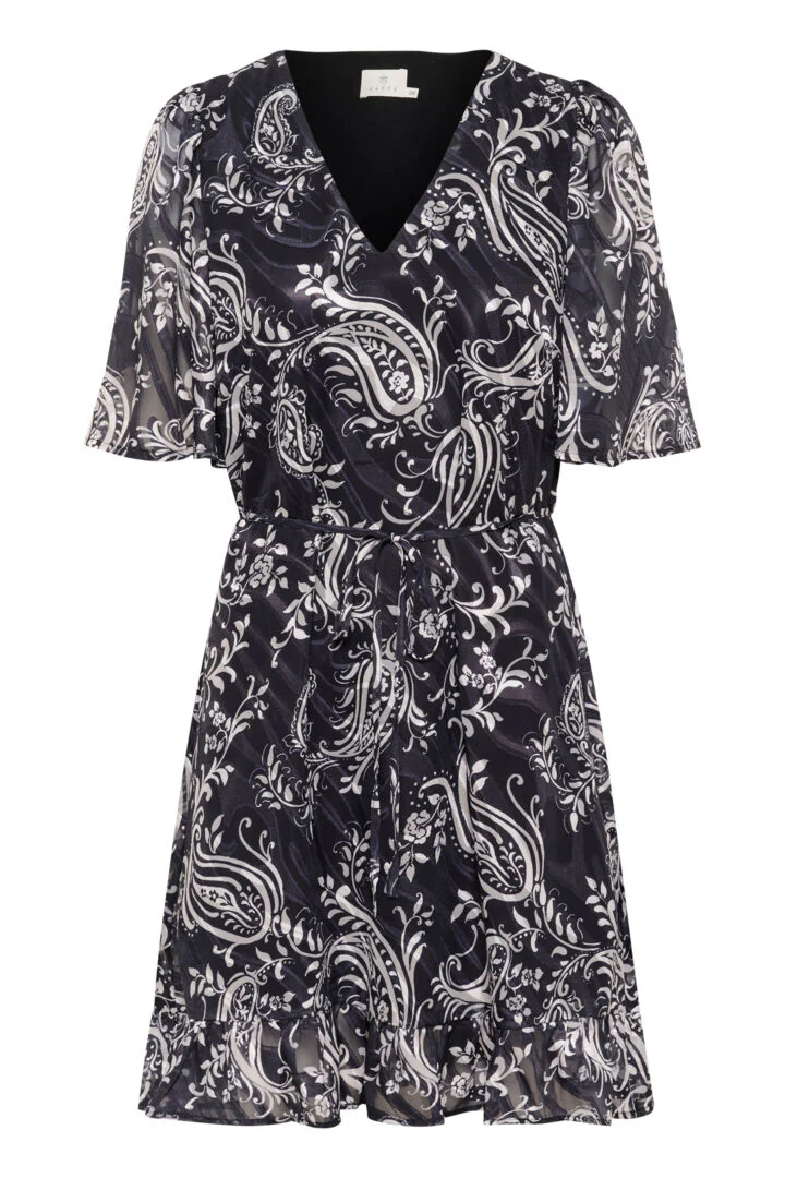 Aussi légère qu’un souffle estival, cette robe fluide en polyester accompagne le mouvement avec une aisance remarquable et une prestance toute en finesse. Confectionnée dans un tissu au toucher soyeux, infroissable et d’un entretien aisé, elle épouse chaque geste avec une légèreté presque aérienne, conférant à la silhouette une impression de perpétuelle mouvance. À chaque pas, elle semble s’animer d’elle-même, transformant la marche en chorégraphie discrète, et les instants du quotidien en tableaux d’une sobre magnificence.
