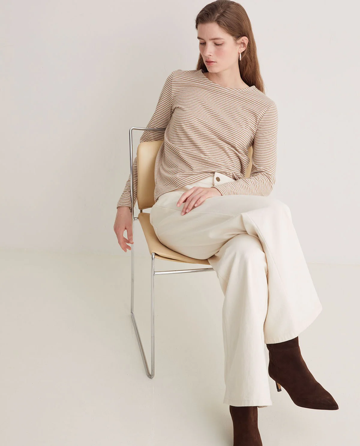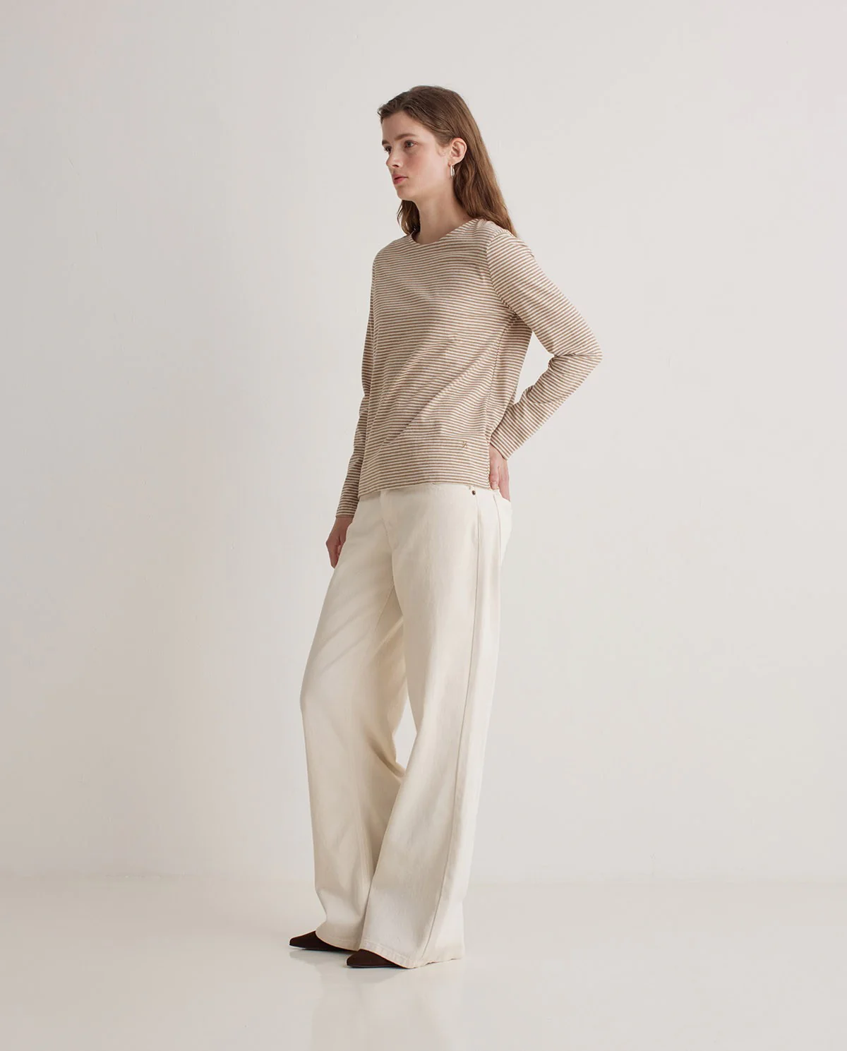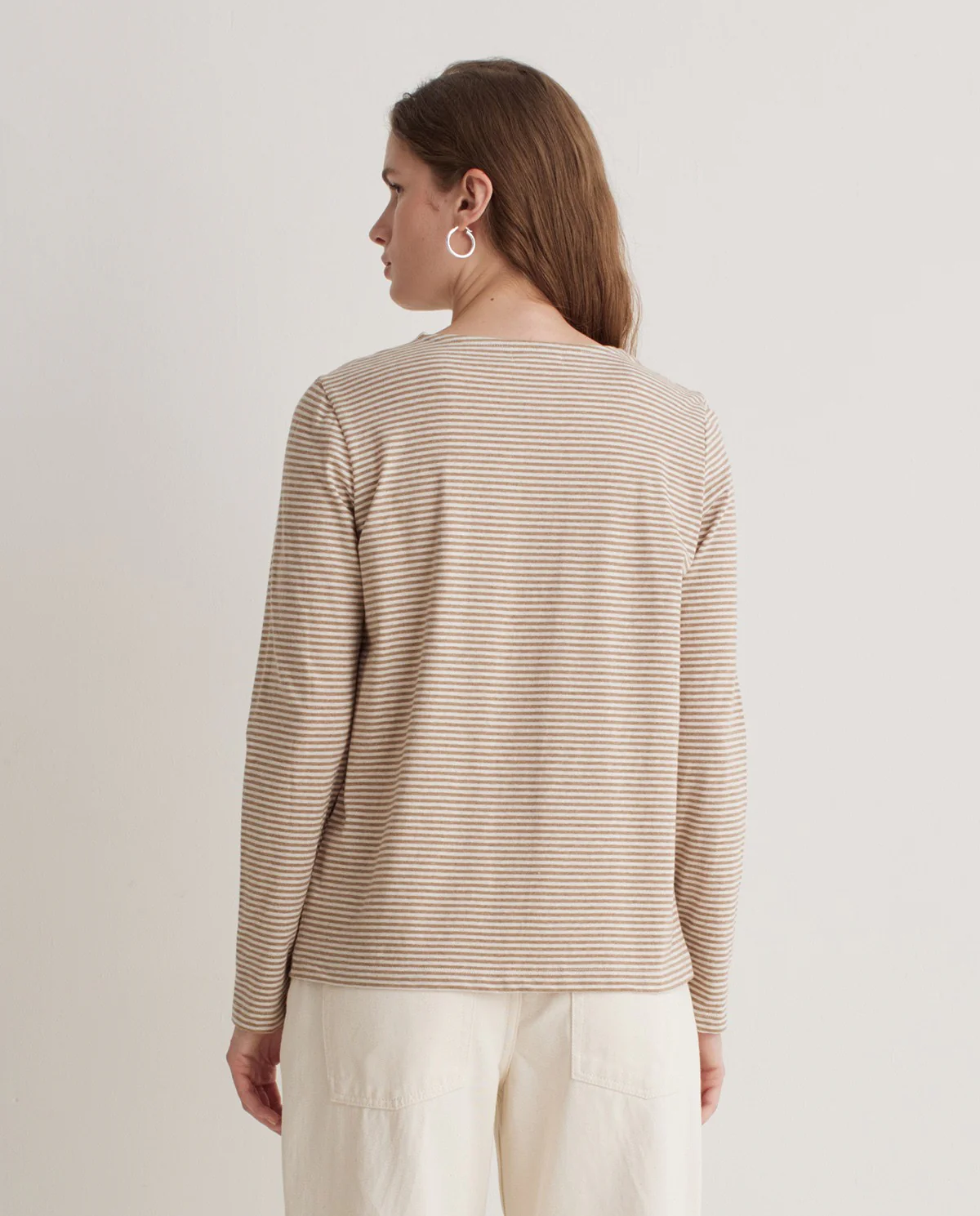 Ce t-shirt à manches longues à rayures étroites est un essentiel revisité avec justesse. Confectionné en 100 % coton biologique, il allie confort naturel et conscience écologique. Sa coupe droite et son col rond offrent une silhouette sobre et facile à porter au quotidien. Les rayures fines apportent une touche graphique discrète, idéale pour un look casual chic. Léger, doux et respirant, ce t-shirt se porte aussi bien seul que superposé.