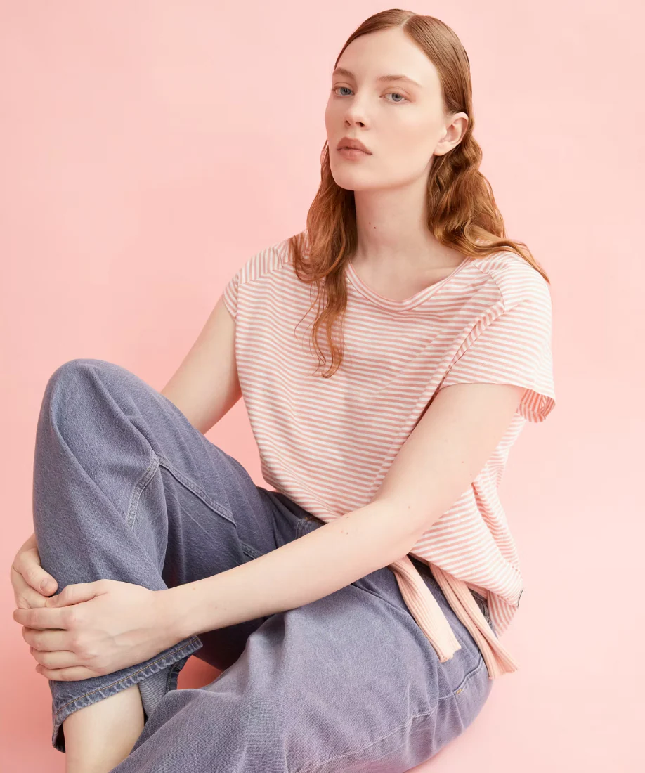 Laissez-vous emporter par un tourbillon de raffinement avec notre chandail à manches courtes, délicatement orné de fines lignes qui, comme un fil d’or, ajoutent une touche discrète de charme. Les manches, à la fois modernes et féminines, dessinent le contour des poignets et des bras, révélant avec une douceur exquise la beauté de ces détails. Véritable hymne à l’équilibre entre esthétique et praticité, ce modèle offre une liberté de mouvement totale, tout en préservant une allure digne et inaltérée.