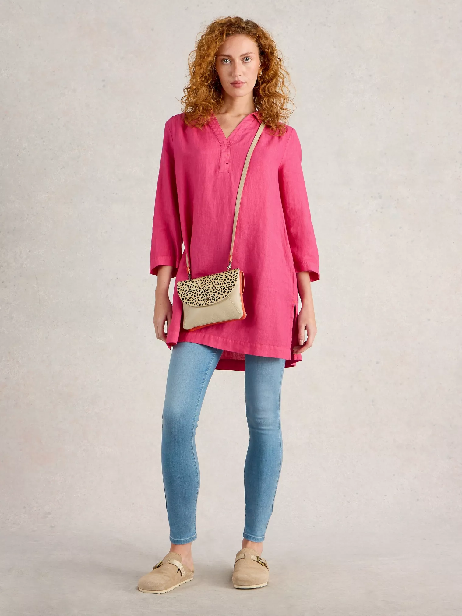 Grâce à sa coupe délicatement ajustée au creux du bassin, cette tunique épouse les courbes avec justesse, pour mieux les laisser libres de s’épanouir ailleurs. Elle prolonge la silhouette, dessinant une allure féminine à la fois souple et assurée. Tel un voile aérien, elle suit vos mouvements avec grâce, effleurant d’un geste discret cet endroit secret où la taille devient danse. Complice du quotidien, elle se prête à toutes les envies, pour celles qui veulent que la mode les accompagne sans jamais les retenir — et qui savent qu’une belle allure naît toujours d’une ligne bien tracée.