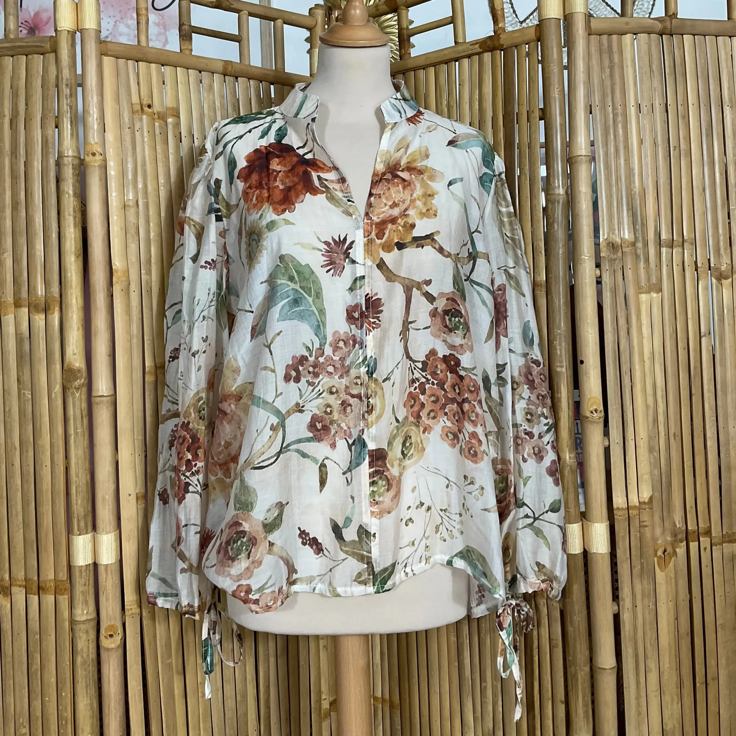 Cette tunique voile fleurie est une pièce incontournable pour une tenue chic et légère au quotidien. À associer avec un jean ou un pantalon fluide pour un style décontracté et féminin.