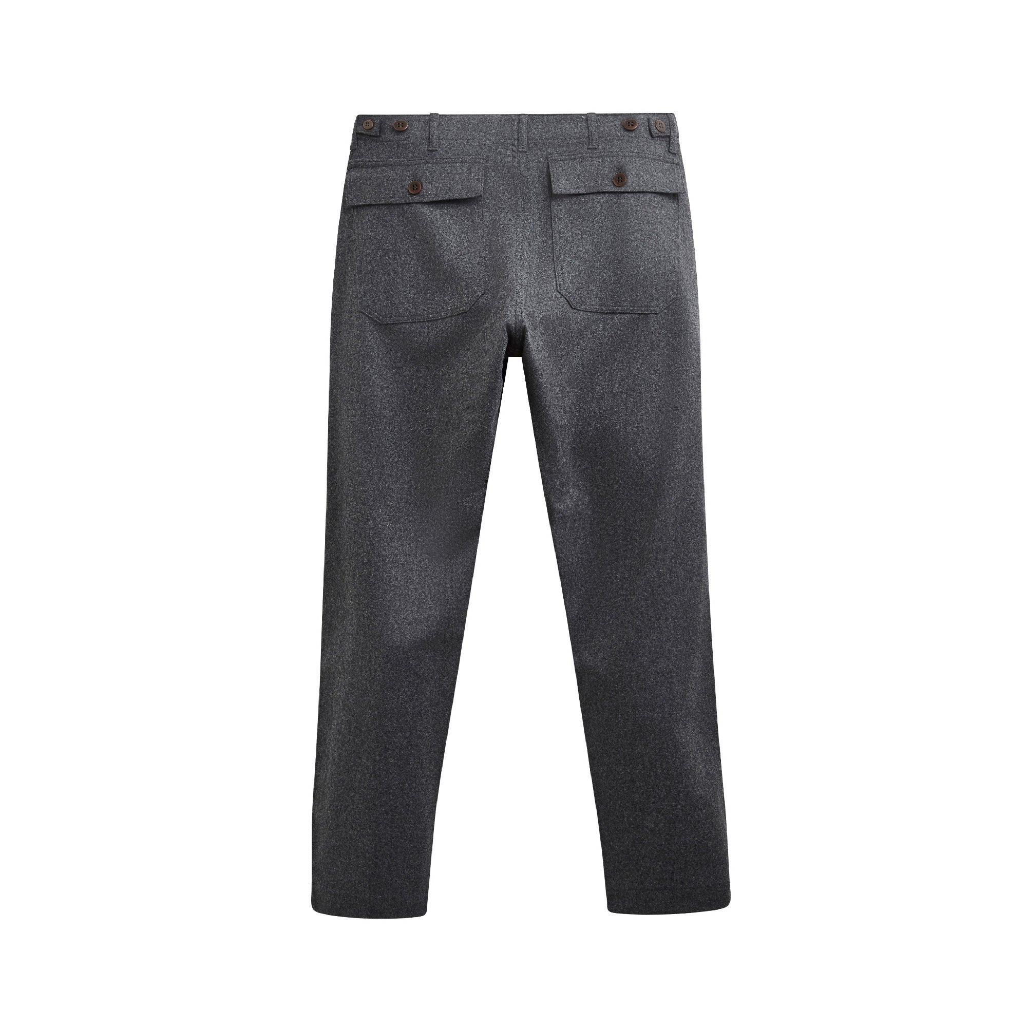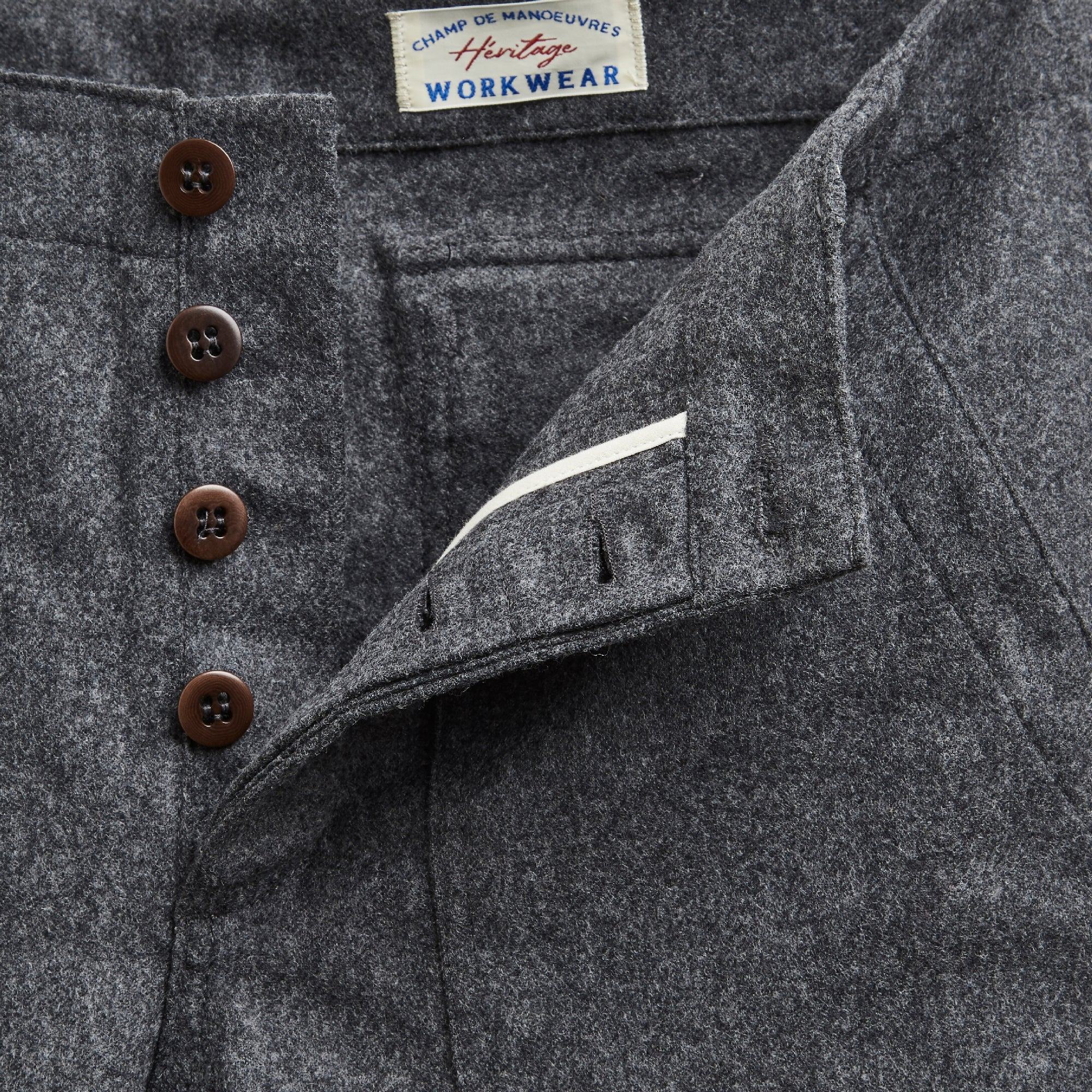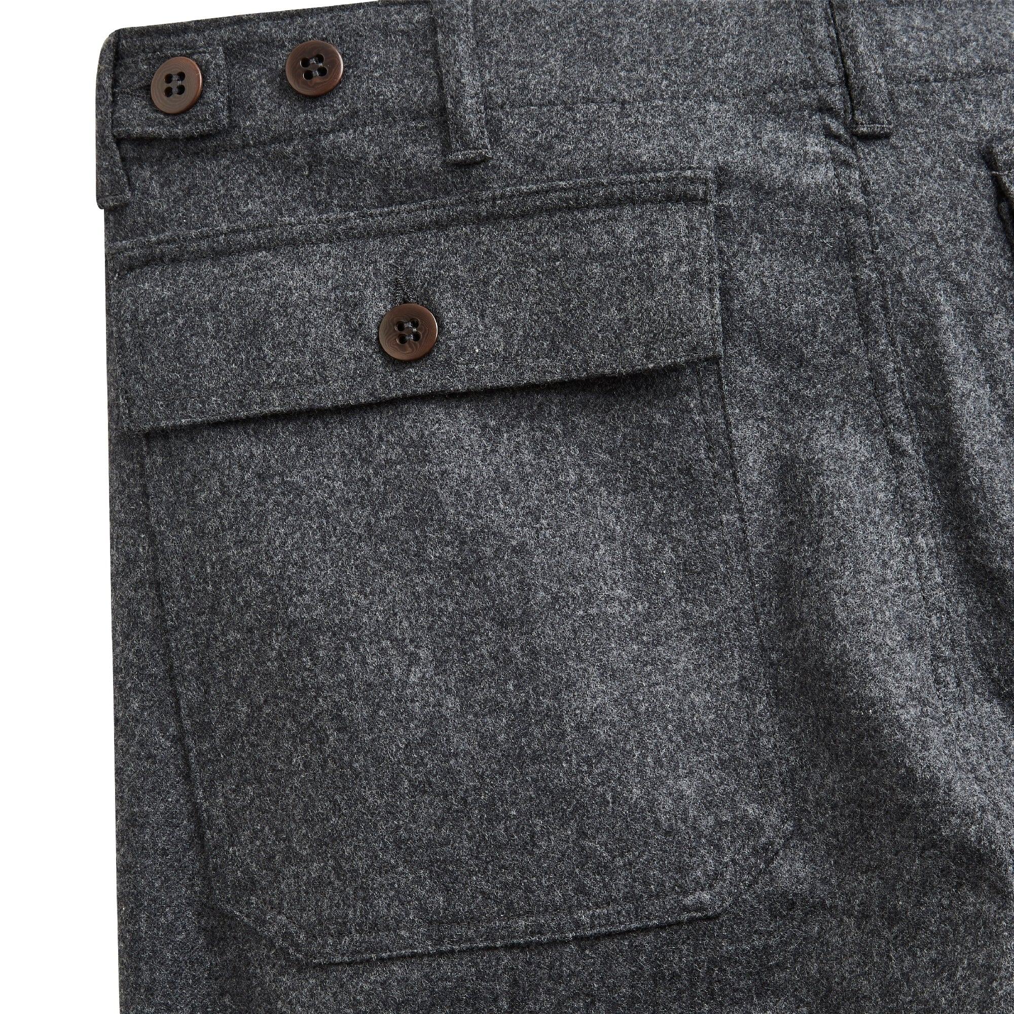 Double patte boutonnée, tous les boutons de ce pantalon sont en corozo (ivoire végétal).